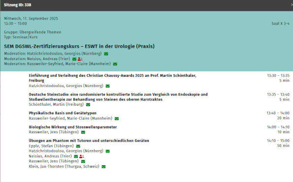 Zertifizierungskurs für ESWT in der Urologie (Praxis), 2025